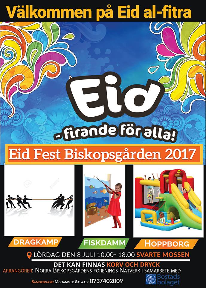 Det nystartade Norra Biskopsgårdens föreningsnätverk har som ett första gemensamt projekt sett till att föreningarna i Norra Biskopsgården ordnar en jättefest för att fira Eid. Tidigare har många föreningar ordnat egna firanden, men nu blir det alltså ett stort gemensamt kalas.