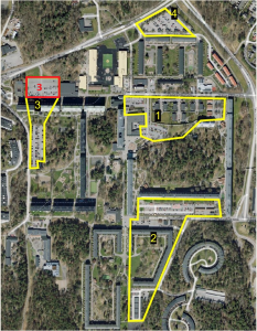 Den rödmarkerade delen av zon 3 är den Tillståndsparkering som är aktiv just nu. Och de gula markeringarna är de zoner som kommer att bli Tillståndsparkering 1 februari 2026.
