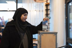 – När vi påbörjade arbetet med Boendebudgeten visste vi att vi ville ha med alla delar som hör till ett val. Därför har vi en vallokal, valsedlar och en riktig valurna. Det gör att våra hyresgäster kommer känna igen sig när de ska gå och rösta i riksdagen om två år, säger Natalie, som också jobbar som utvecklingsledare på Bostadsbolaget.