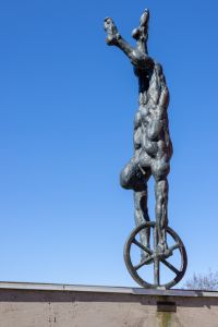 ”Balansören” av Rino Božajic utför sin cirkusakt på en mur längst upp på Doktor