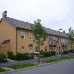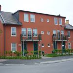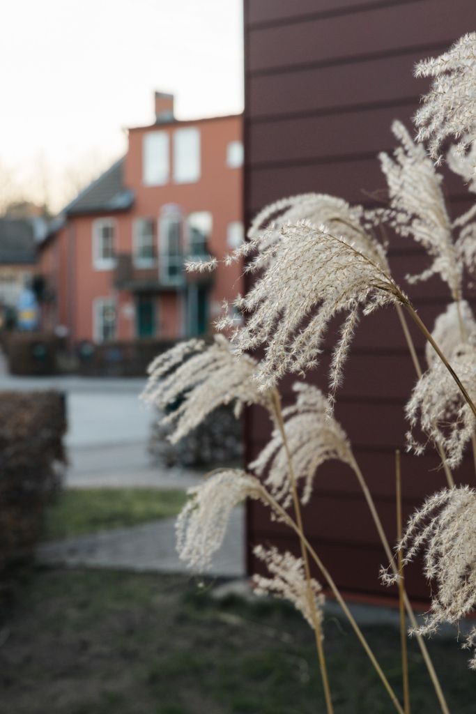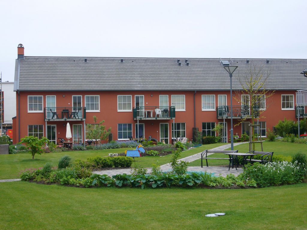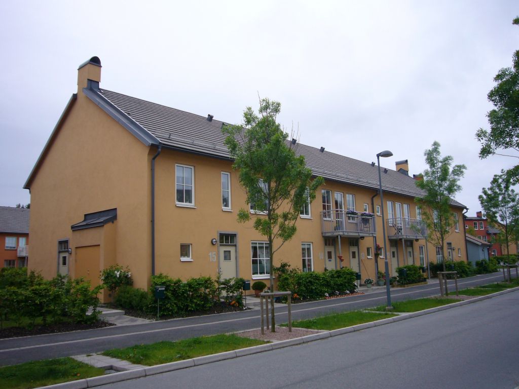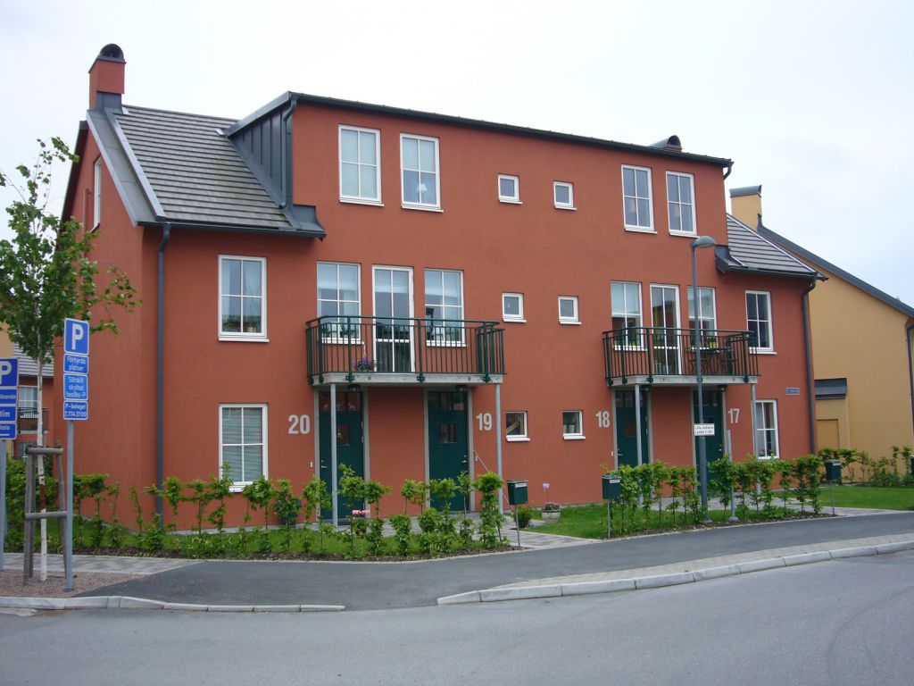Husen består av trä och puts i varma färger, två och en halv våning. Många lägenheter har uteplatser och bor man högre upp i huset har man balkong. Vi har två rum och kokvrå upp till fem rum och kök. Vanligast är treor. Alla lägenheter har egen tvättmaskin och torktumlare.